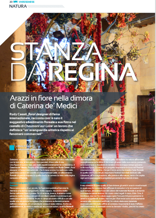 Rudy Casati, floral designer di fama internazionale, racconta com’è nato il suggestivo allestimento floreale a sua firma nel castello di Chaumont sur Loire: un lavoro che definisce “un’avanguardia artistica rispetto ai fenomeni commerciali”