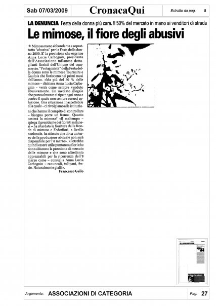 I Fioristi sono i primi ad essere danneggiati e nelle loro tasche non entra nemmeno un centesimo dalle vendite per beneficenza. Gli affari d'oro vengono fatti da altri e non certo da noi, come gli articoli nelle pagine 2 e 3 ben spiegano. Chi scrive i titoli dovrebbe almeno leggere a cosa si riferiscono! Speriamo che la maggior parte dei lettori non si fermi al titolo dell'inchiesta