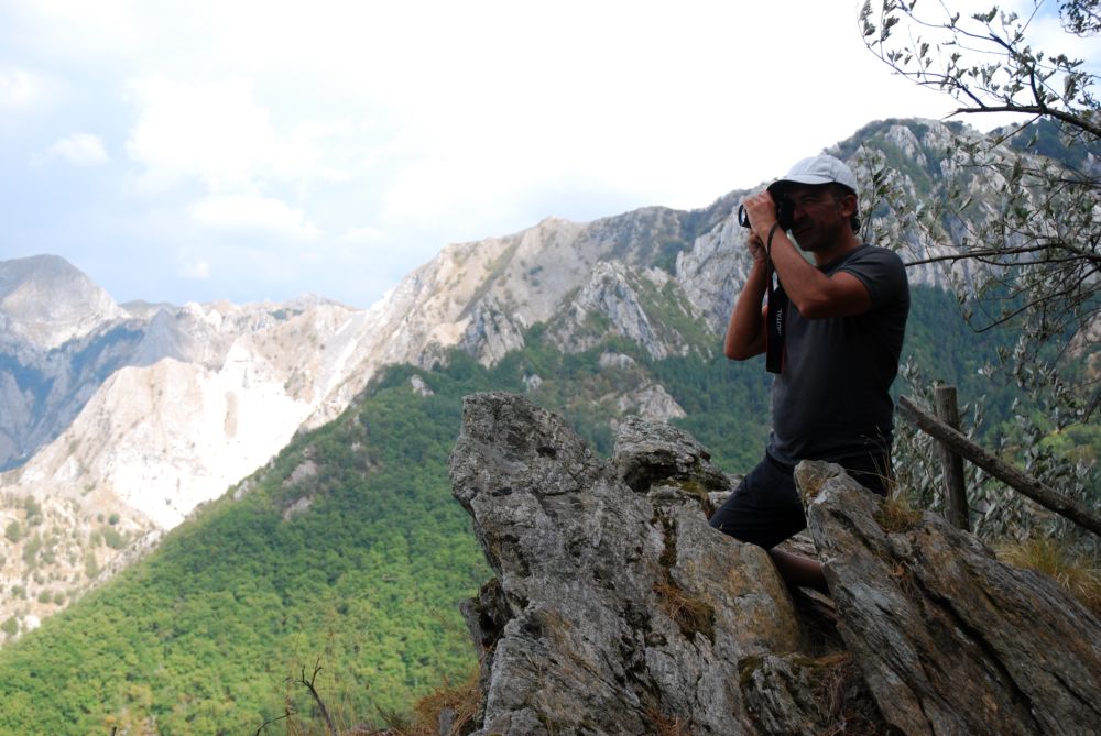 Devo dire che è stata per me una piacevole sorpresa scoprire una terra che per 42 anni mi era rimasta ignota per la pigrizia di non andarla a cercare: per scoprire quanto è sorprendente passare in soli 30 km, dal paesaggio marino, turistico, godereccio della Versilia, alle imponenti cime apuane, montagne di straordinaria bellezza, da cui l'uomo ha saputo con grande fatica e sacrificio estrarre la materia prima per i capolavori di Michelangelo. Il panorama che mi si presentava durante il percorso di salita, sembrava quello di una cronoscalata dolomitica, strade ampie, curve e tornanti circondati dal verde, cime maestose intagliate nel bianco del marmo: una natura esplosiva che ti colpisce in cambi repentini di paesaggio, con però l'orizzonte dipinto nel blu del mare tirreno. Per me che sono abituato e radicato, da buon sciatore, nei paesaggi alpini dove la roccia si perde nel bianco ottico della neve in quota, è un bel salto di qualità, a cui la mia mente non era certo abituata.