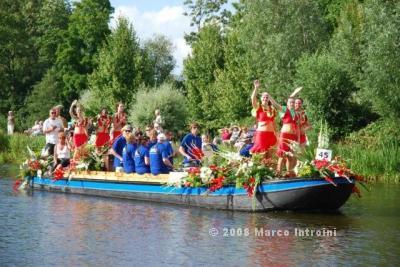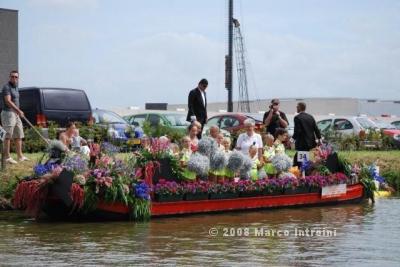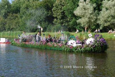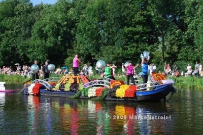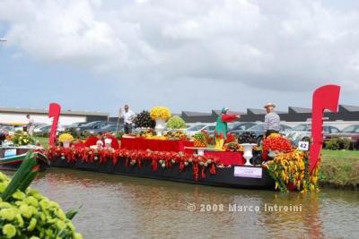 Un giorno chiacchierando con Charlie, il deus ex machina dell'Ufficio olandese dei fiori, è saltata fuori così, per caso: il Gruppo I Felini , che fanno promozione per Ch4Ch avevano in programma una sortita nella terra dei tulipani per animare questo evento e Charlie insieme a Lucas Janssen, il famoso Floral Designer stavano progettando una barca italiana per la sfilata. . . . . mamma mia che curiosità !