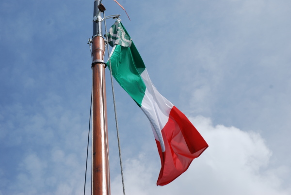 Naturalmente i ponti erano bassi, ma così bassi che ad ogni manovra dovevo chinarmi o saltare dentro lo scafo, per poi risaltare fuori come un canguro alla manovra seguente; ma vuoi mettere la soddisfazione di prendere l'applauso ogni volta che si issava l'albero, vedere sventolare il nostro tricolore al tempo del battimani del pubblico!